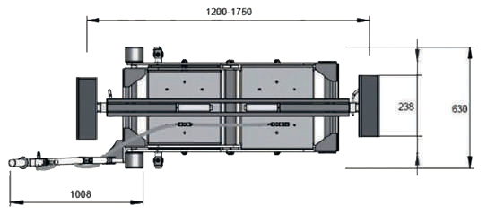 • Los brazos telescópicos con parada automática extienden el ancho del travesaño de 1200 mm a 1750 mm