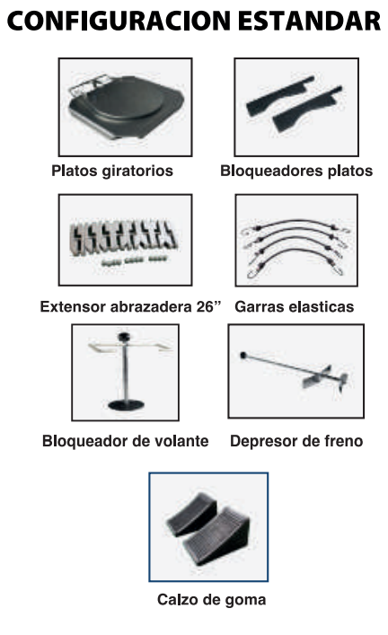 - Con accesorios estándar para soportar la sujeción de llantas de 10 a 26 pulgadas