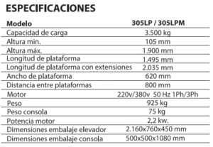 ELEVADOR ELECTROHIDRAULICO DOBLE TIJERAS SUPERFICIE MONOFASICO 3,5 TN