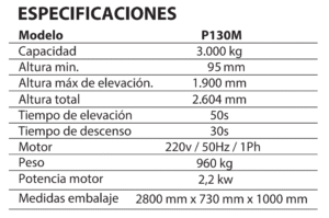 ELEVADOR MONOCOLUMNA MOVIL 3.000 KGS