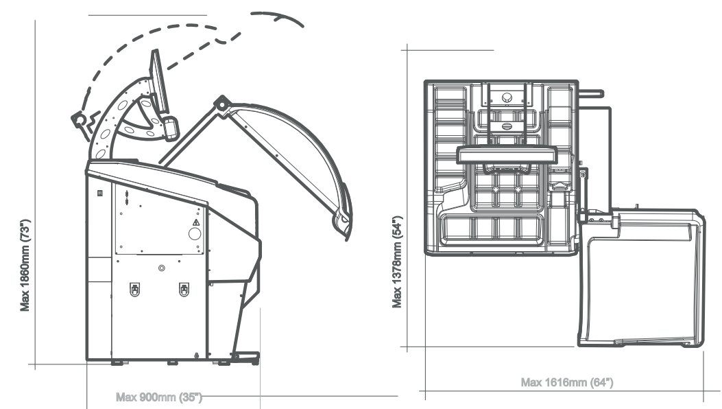 Nuevo detector con selección automática de los programas de equilibrado e introducción automática de distancia y diámetro 38″. El nuevo puntero LaserX integrado en el brazo de medición dirige al operador en la elección de las superficies internas de la llanta de aleación sin errores y con extrema visibilidad. La aplicación de los pesos adhesivos puede realizarse mediante el terminal portapesos o usando la línea Láser a las 6 horas. - B – INSERCIÓN PARÁMETROS ANCHURA RUEDA: