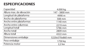 SF4040 ELEVADOR 4 COLUMNAS ELECTROHIDRAHULICO PARKING 4TN