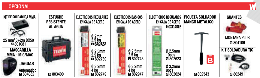 Equipada con accesorios para soldadura MMA y maleta aluminio.