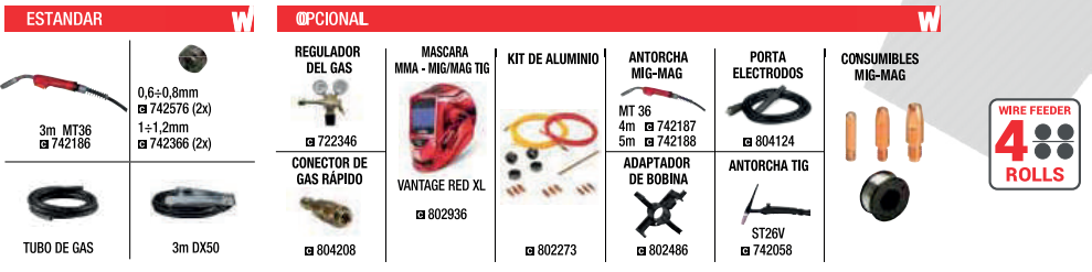 Incluyen la antorcha MIG-MAG, cable y pinza de masa.